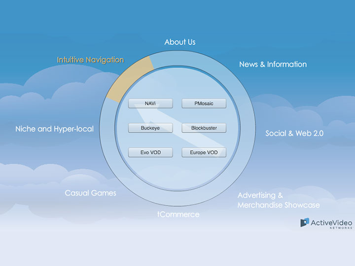 I designed and coded an interactive press kit for ActiveVideo. It was loaded onto a USB flash drive and given out during trade-shows and meetings with potential clients. It contains talking points and videos for most of the interactive TV apps the company offered at the time. When I was creating the press kit the programming language Flash was still used widely. Today, however, it is not very popular so I've taken a video capture of the interface viewable below.