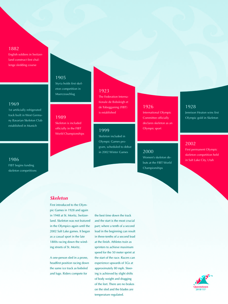This was a slideshow that was presented at the end of the project. It walks through each stage of the final system; which includes the logo, an Olympic poster, a poster for the sport of Skeleton with a history of the sport on the reverse side, a way finding poster for the sport of Skeleton, a barricade design, pictograms for five sports: skeleton, ski jump, snowboarding, ice hockey, and ski tricks, and a website mockup. All adhering to the aforementioned theme and color palette.